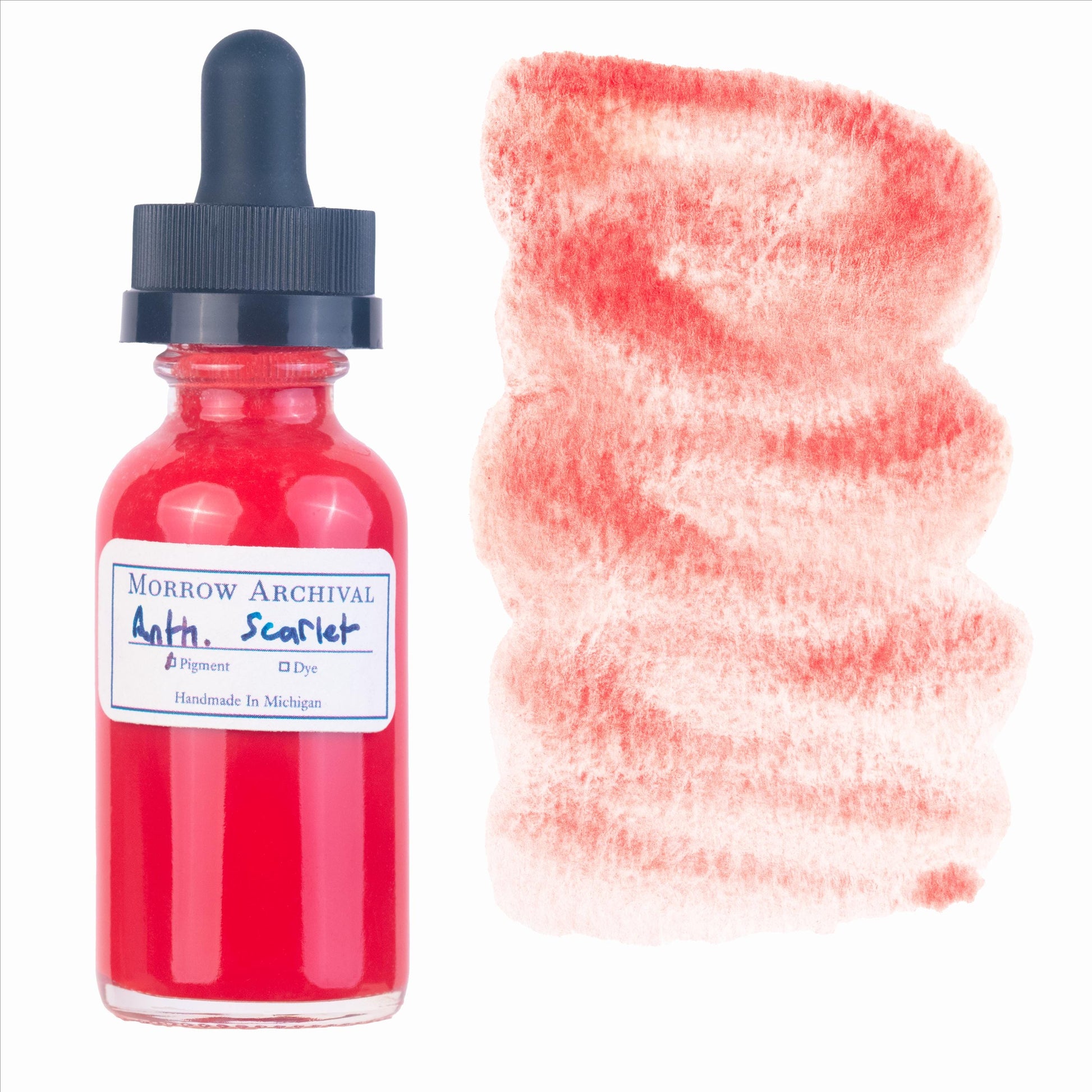 Anthraquinone Scarlet Watercolor Ink is our exquisitely hand-crafted watercolor ink made with an extremely concentrated, high-quality single source pigment. Every bottle is meticulously hand mixed, poured, and sealed, using only pure distilled water, raw honey, and a small amount of all natural, pure gum arabic to achieve an exceptionally vibrant and richly pigmented liquid.