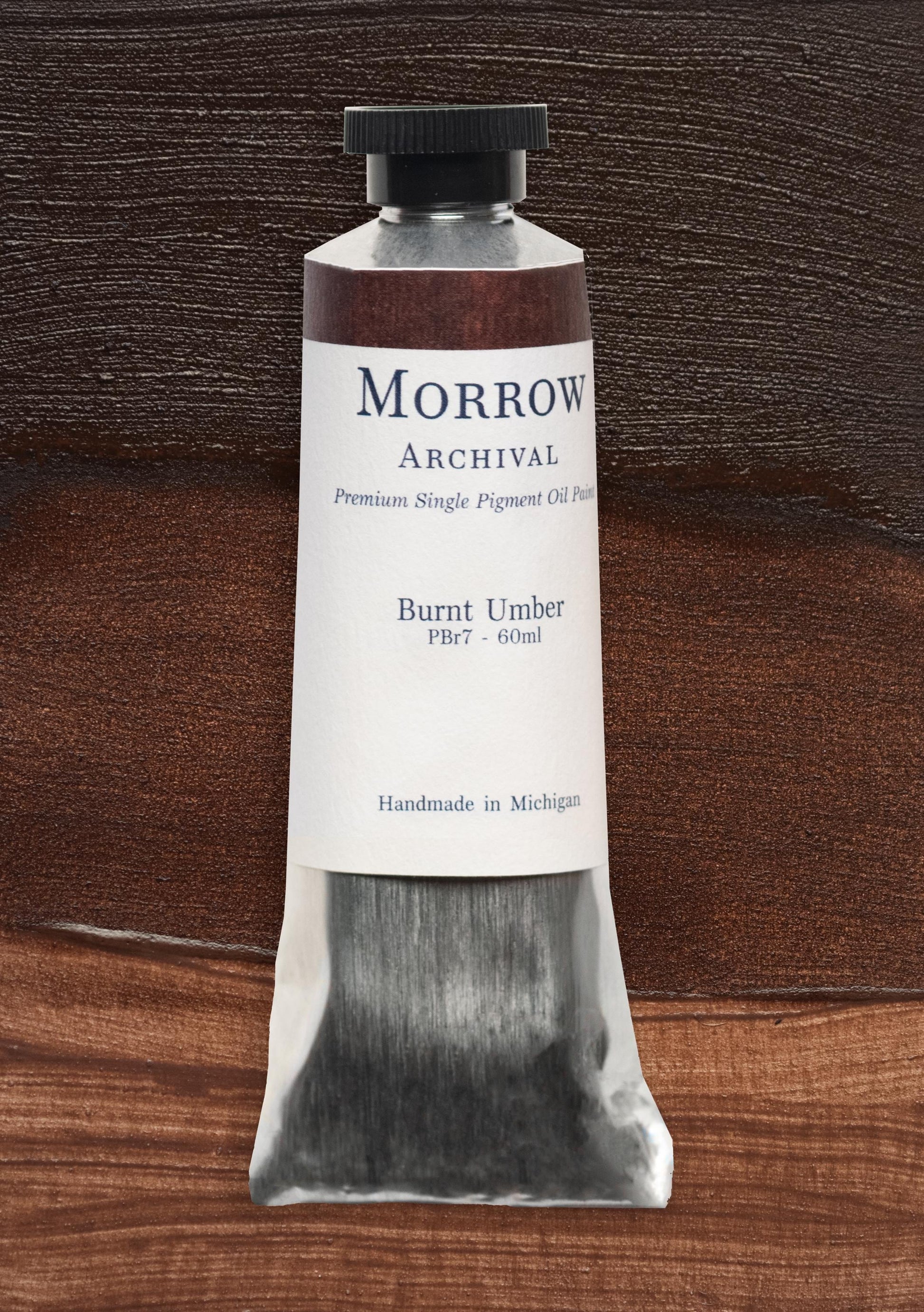 Burnt Umber is our exquisitely hand-crafted oil paint made with an extremely concentrated, high-quality single source pigment. Every tube is meticulously hand mulled, filled, and labeled using only pure cold-pressed walnut oil (linseed oil available upon request) and the maximum amount of hand-ground and richly textured pigment.
