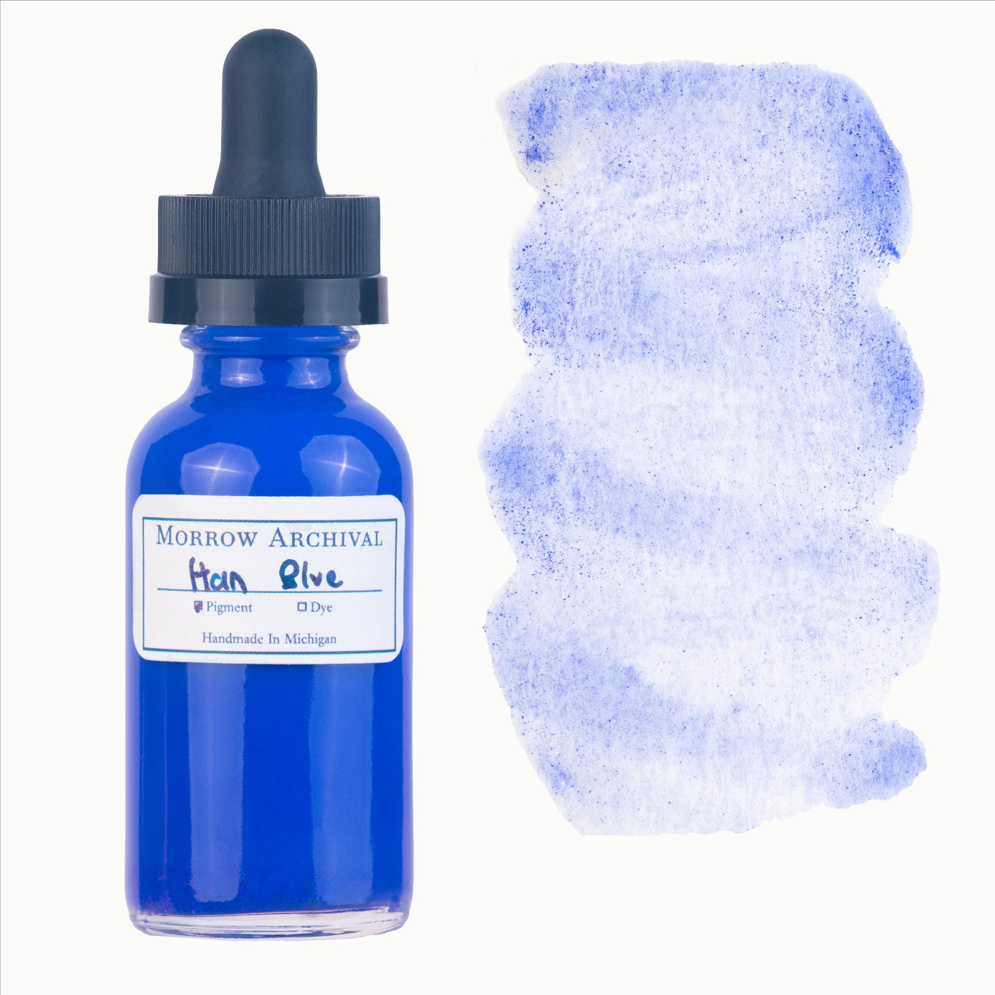 Han Blue Watercolor Ink is our exquisitely hand-crafted watercolor ink made with an extremely concentrated, high-quality single source pigment. Every bottle is meticulously hand mixed, poured, and sealed, using only pure distilled water, raw honey, and a small amount of all natural, pure gum arabic to achieve an exceptionally vibrant and richly pigmented liquid.