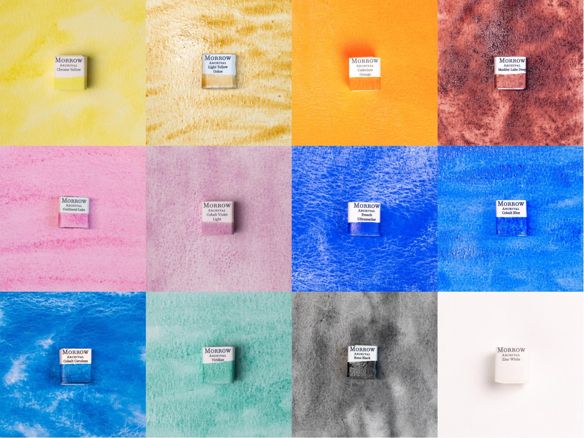 Each pan is carefully handcrafted in small batches using historically accurate pigments and all-natural binders of gum arabic and honey. These brilliant, responsive hues were favored by impressionist painters such as Monet, Renoir, and Morisot for their ability to layer, shimmer, and blend directly on the paper. This set offers exceptional chroma and versatility and is ideal for landscapes, portraits, and expressive color studies.