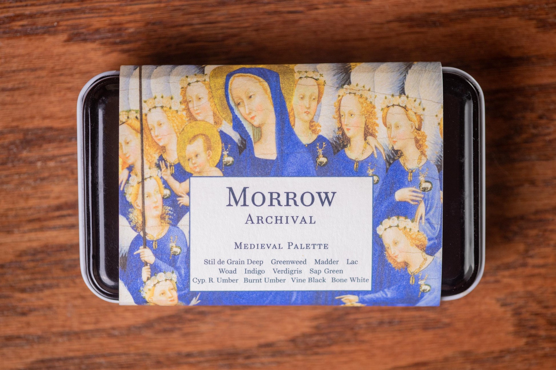 Uncover the colors of illuminated manuscripts and monastery walls with our Medieval Palette, a curated set of 12 half pans of handmade watercolor crafted from authentic historical pigments. Presented in a sturdy black metal tin, this collection draws on the vibrant natural colors used by medieval artists and scribes, formulated entirely with traditional ingredients for a richly expressive painting experience.