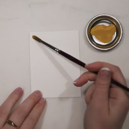 Yellow Ochre Watercolor Ink is our exquisitely hand-crafted watercolor ink made with an extremely concentrated, high-quality single source pigment. Every bottle is meticulously hand mixed, poured, and sealed, using only pure distilled water and a small amount of all natural, pure gum arabic to achieve an exceptionally vibrant and richly pigmented liquid.